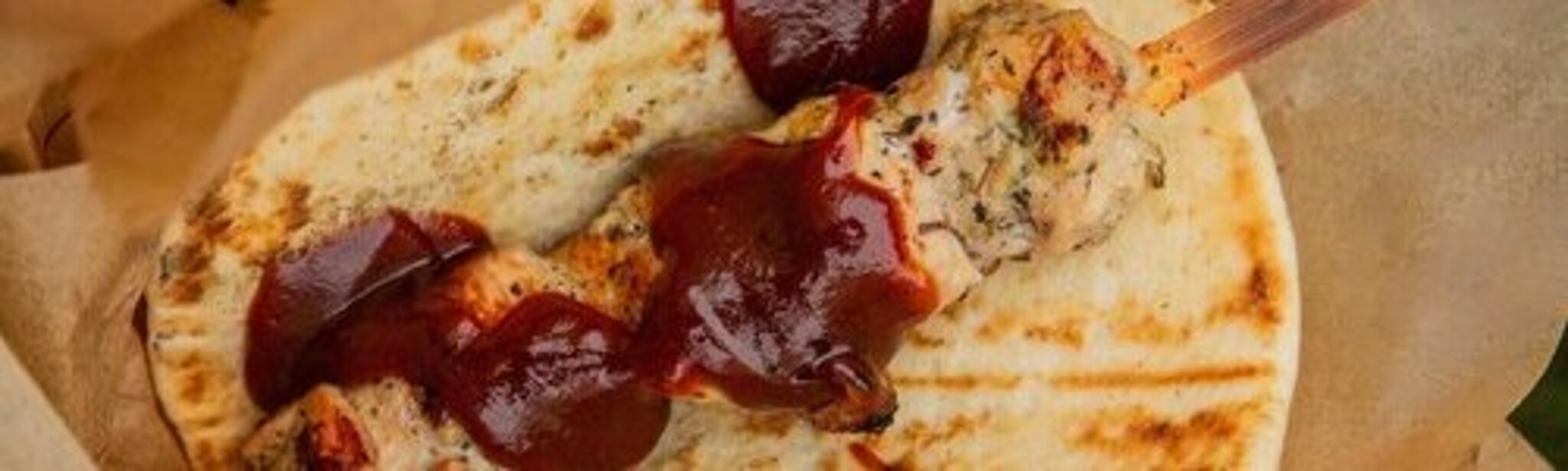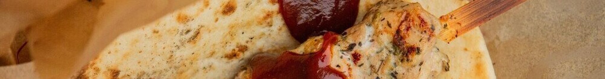 | Chicken on a Stick Juicy chicken grilled with garlic and fresh herbs on a warm pita bread |